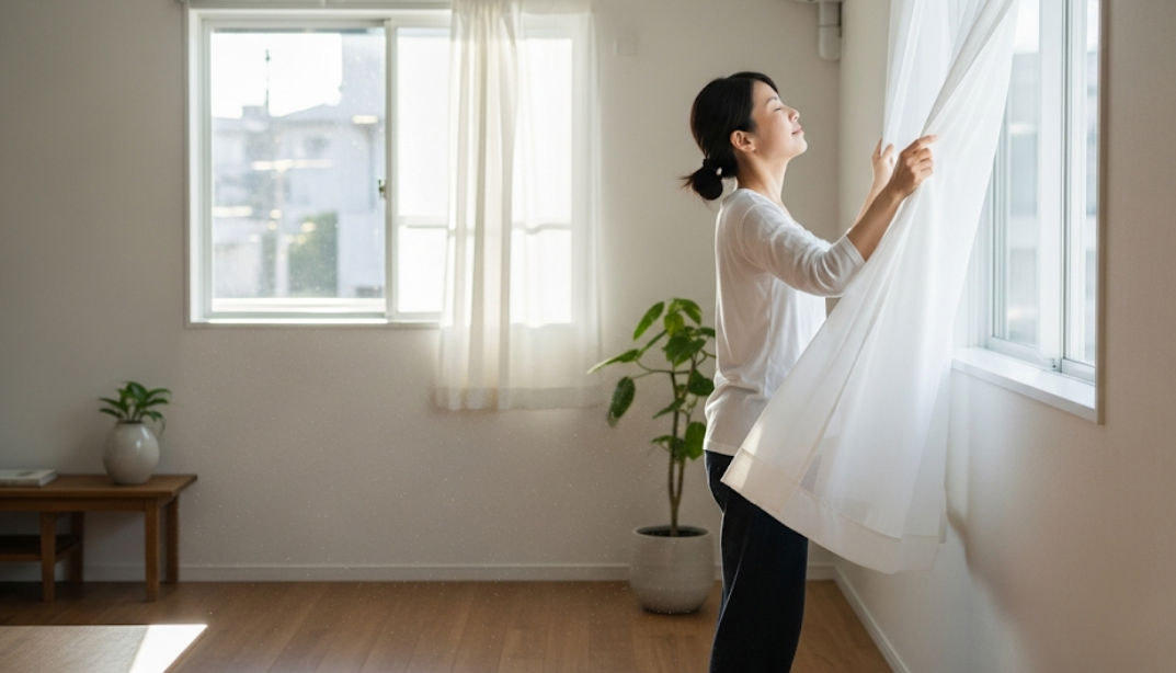 - 部屋の空気を入れ替えて浄化する